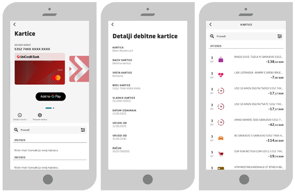 It is possible to activate cards of natural persons via m-ba. You need to select an inactive card and click on the option "ACTIVATE THE CARD". All additional information and clarifications related to the card activation via m-ba can be obtained by calling the Contact Center on the toll-free number 080 081 051.